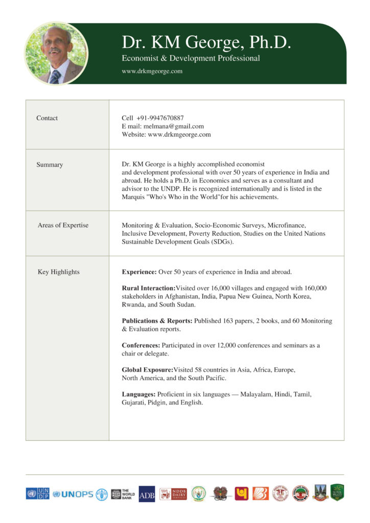 Dr. K. M. George PhD in Micro Finance & Monitoring and Evaluation of Rural development interventions: