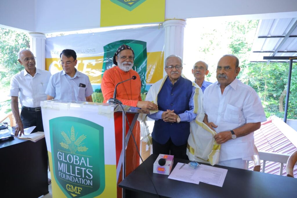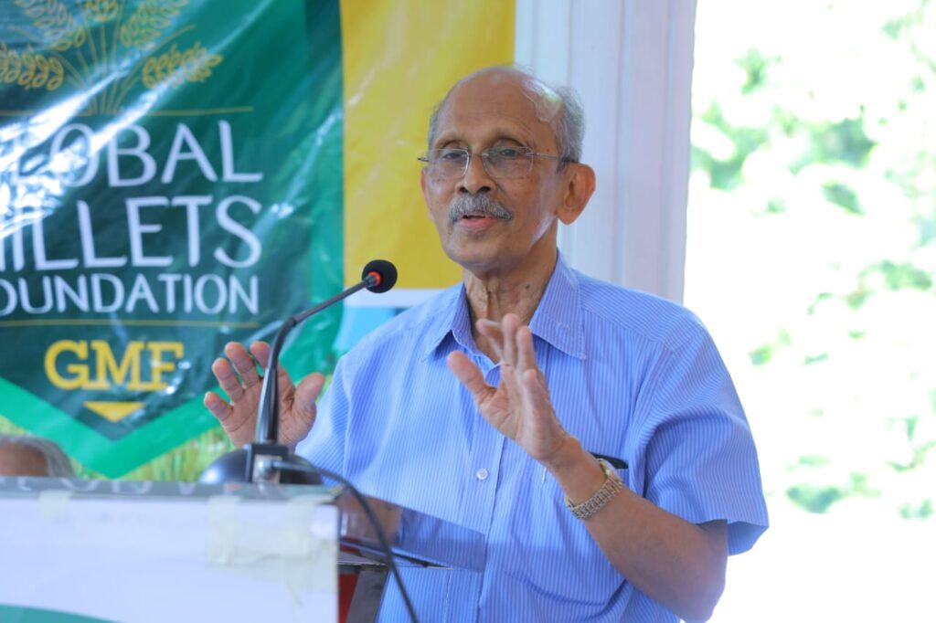 Dr KM George addressing the 176th seminar of GMF & SDF on 9th November—Mel Mana Gardens—Kerala on Millets andWellness